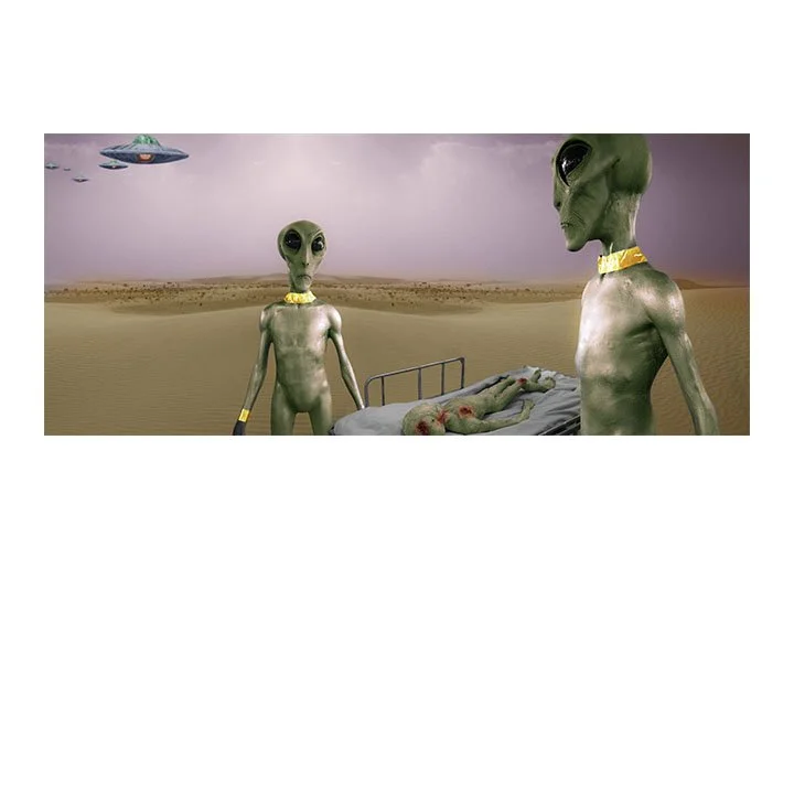 This photographic composite brings together elements from two iconic New Mexico locations—Roswell and White Sands National Park—to explore themes of myth, mystery, and landscape. By placing alien figures, originally photographed in Roswell, into the surreal expanse of White Sands, the piece blurs the line between the fantastical and the real. It invites viewers to reconsider the cultural narratives tied to these places, transforming the desert into a stage where folklore and environment merge. This work is both a playful homage to New Mexico’s extraterrestrial lore and a meditation on the landscapes that shape our collective imagination.